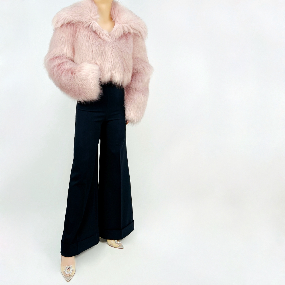 Роскошная укороченная шуба из эко-меха в нежном розовом оттенке. Объёмный воротник и идеально выверенный крой придают силуэту лёгкость, а шелковистая текстура создаёт эффект «свежего подиума». Подходит для выхода в свет, съёмок и тех дней, когда хочется быть центром внимания, оставаясь безупречно элегантной.