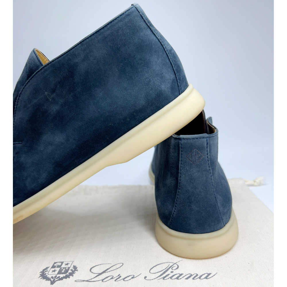 • Темно-синие Open Walk от Loro Piana органично впишутся и в деловой костюм, и в расслабленные джинсы. Для пары с округлым мысом использована бархатистая водоотталкивающая замша Wish®, внутри — мягкая кожа наппа. Ультралёгкая каучуковая подошва оттенка слоновой кости смягчает шаг и подчёркивает минималистичный силуэт.