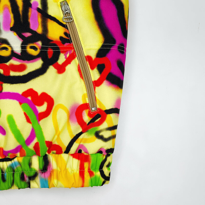 Граффити-принты, нарисованные вручную в стиле нью-йоркского стрит-арта, превращают классический силуэт в арт-объект.