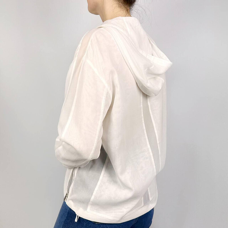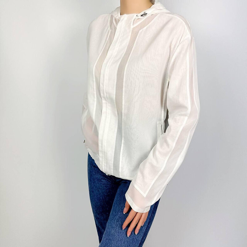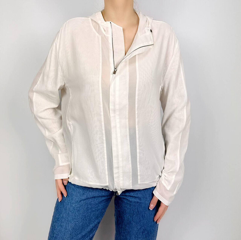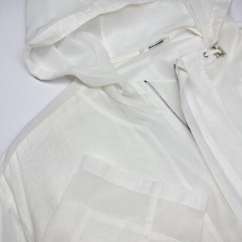 Худи на молнии Hermes. Лёгкий оверсайз-силуэт с капюшоном напоминает о летних бризах: наденьте сверху на майку или купальник — и образ сразу станет непринуждённым, но утончённым. Молния с фирменным металлическим бегунком позволяет варьировать глубину выреза, а кулиска по низу собирает подол в мягкую округлую линию.