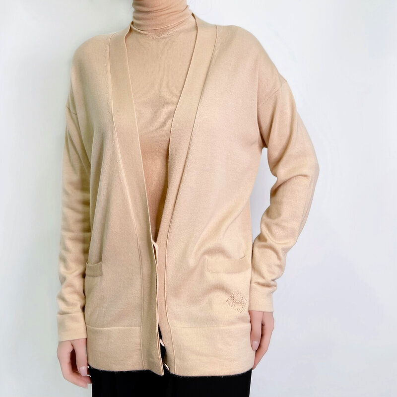 Водолазка и кардиган воплощение спокойной роскоши от французского Дома. Выполнены из тончайшего кашемира нежно-персикового оттенка. Лаконичный силуэт и благородная фактура создают универсальную основу гардероба, которая одинаково уместна в повседневных образах и в деловой среде.