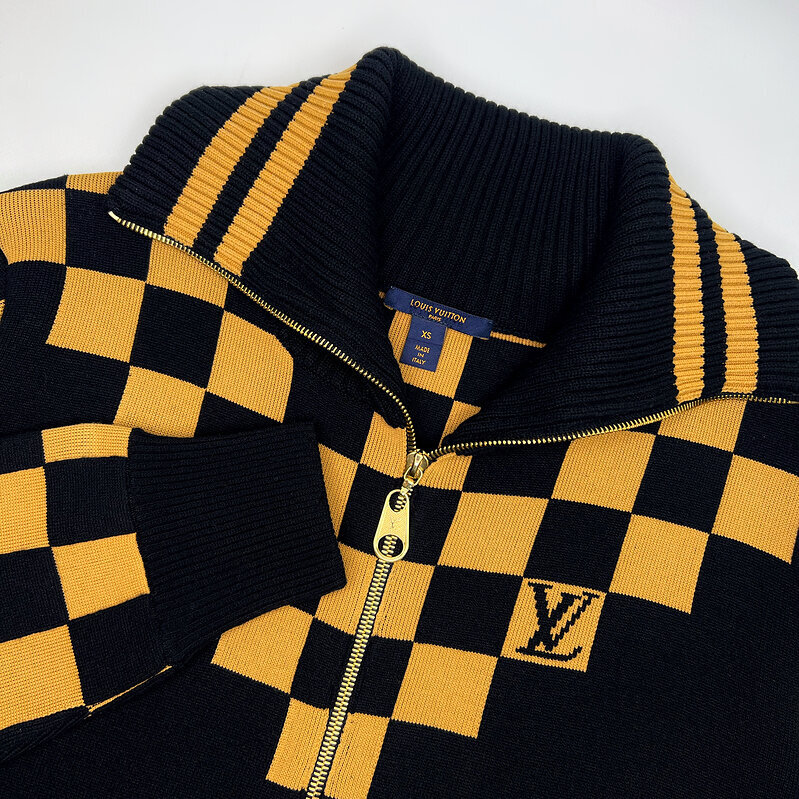 Иконический женский костюм Louis Vuitton в фирменном шахматном дизайне.