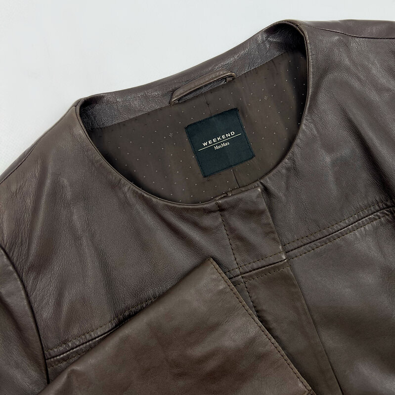 Модель выполнена из мягкой натуральной кожи с деликатным матовым блеском. Лаконичный прямой крой, чистая линия плеч и минималистичная отделка создают образ в эстетике «тихого люкса» — без лишних деталей, но с безупречной посадкой.