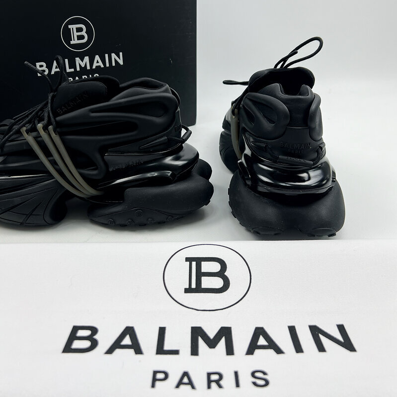 Легендарная модель Balmain Unicorn в полностью чёрном исполнении — одна из самых узнаваемых и футуристичных пар бренда.