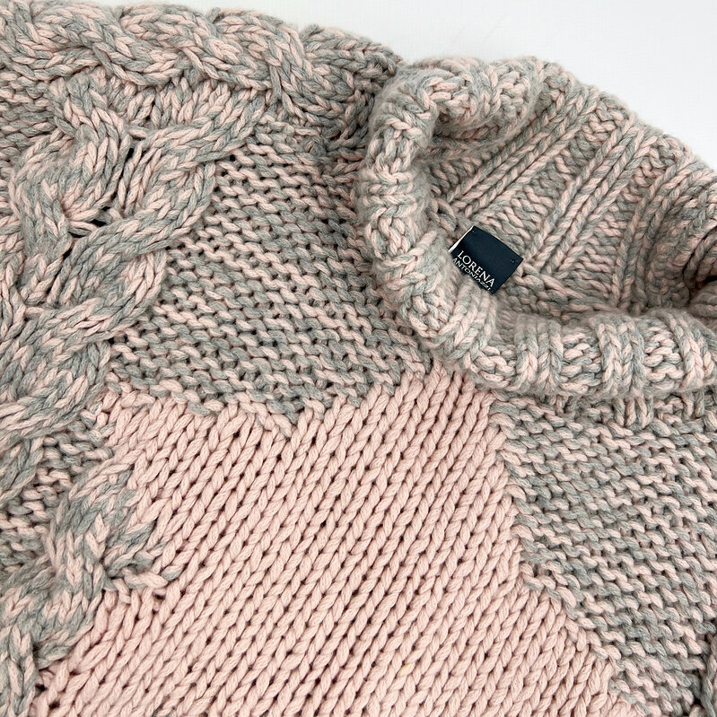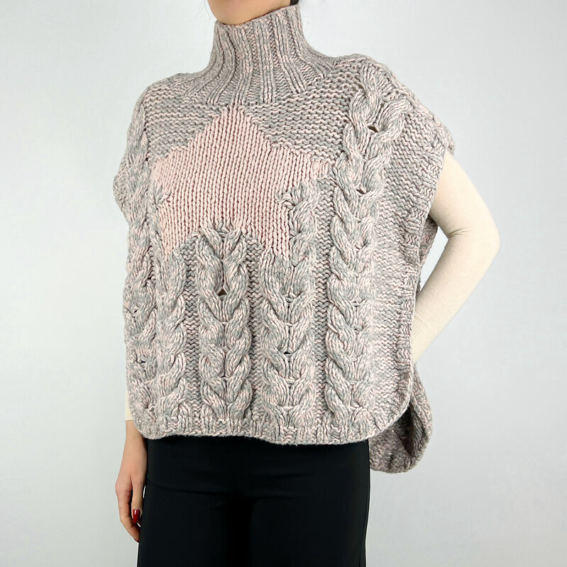 Модель выполнена в сложной вязке с выразительным рельефным узором и высоким воротником. Благородное сочетание розово-серого оттенка подчёркивает фактуру изделия и делает его универсальным для многослойных образов.Мягкий, комфортный на ощупь, отлично смотрится как самостоятельно, так и поверх базовых лонгсливов и рубашек.