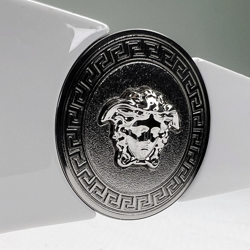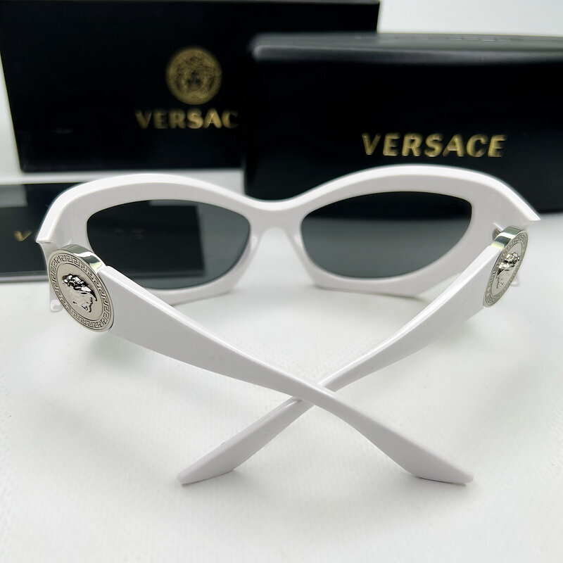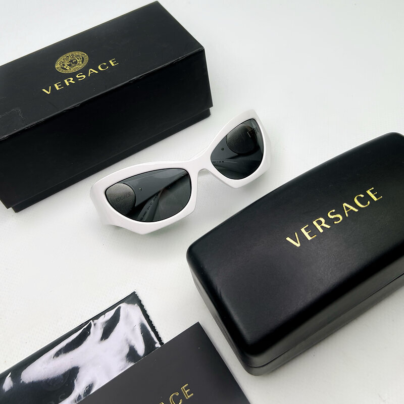 • Графичная модель, в которой сочетаются архитектурная форма и узнаваемый код Versace. Белая оправа выглядит максимально свежо и дорого, создавая контраст с затемнёнными линзами.