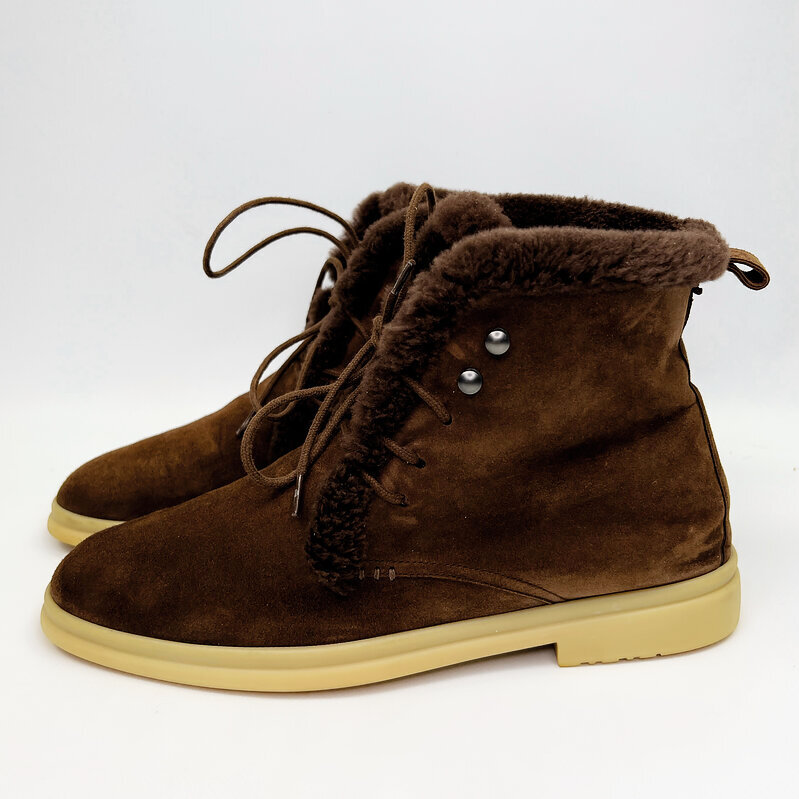 Выполнены из мягкой замши и отделаны натуральным мехом нутрии, обеспечивающей комфорт и идеальную терморегуляцию.