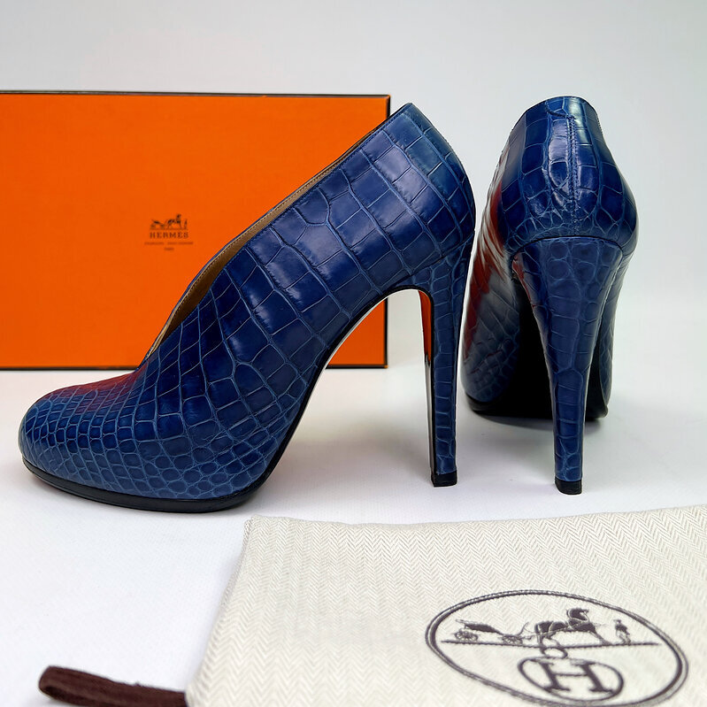 Классический силуэт с округлым мысом и изящным высоким каблуком создаёт утончённую линию ноги и идеально подходит как для вечерних образов, так и для строгой деловой классики. Экзотическая кожа Hermès отличается исключительной мягкостью, прочностью и характерным благородным блеском.