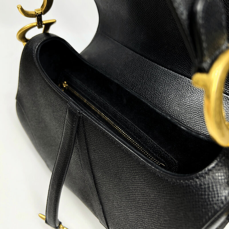 Легендарная модель, переосмысленная Марией Грацией Кьюри, выполнена из кожи насыщенного чёрного оттенка. Фирменный силуэт в форме седла, акцентная золотистая фурнитура и подвеска «D» создают мгновенно узнаваемый образ. Средний размер делает её идеальным выбором для повседневных выходов и особых случаев.