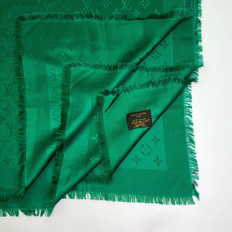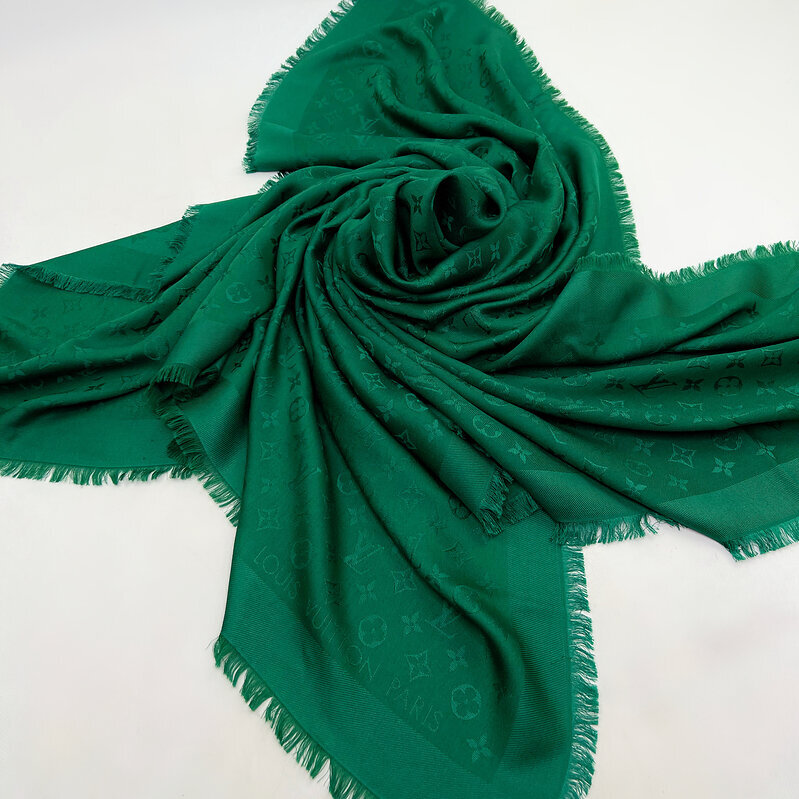 Элегантная шаль Louis Vuitton в насыщенном изумрудном оттенке — выразительный и благородный аксессуар, который легко становится центральным элементом образа. Модель выполнена из премиального смесового материала с шелком и шерстью, благодаря чему ткань мягкая, легкая и одновременно прекрасно сохраняет тепло.